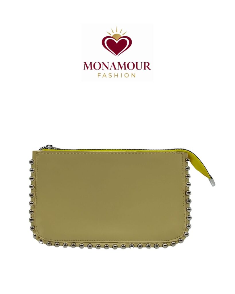 Umesto klasičnog kaiša, model Cyprus dolazi sa metalnim lancem koji se može skinuti, omogućavajući nošenje u ruci ili preko ramena. Ivicama ukrašenim metalnim biserima dodat je prepoznatljiv vizuelni akcenat koji torbi daje elegantan, ali upečatljiv karakter.